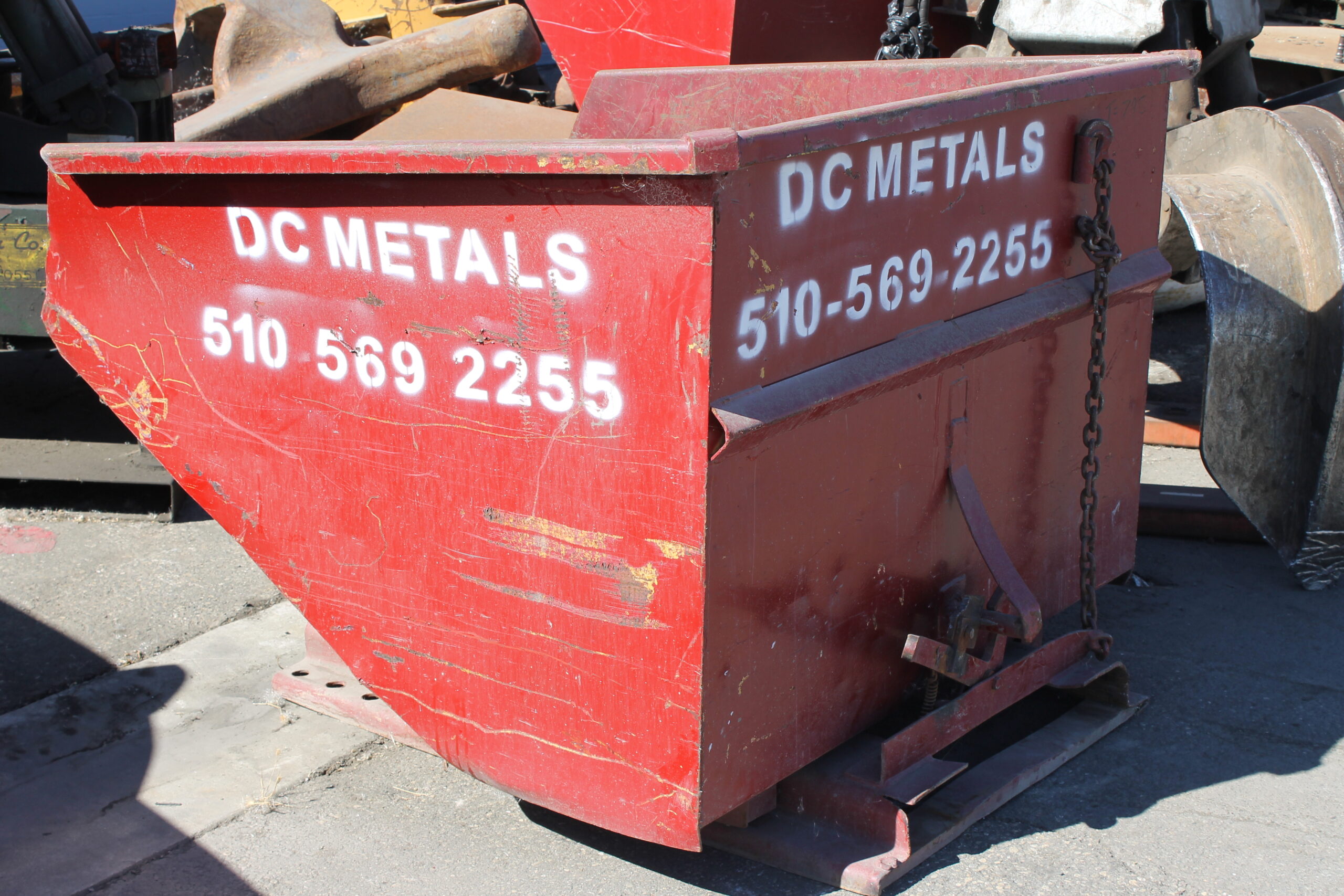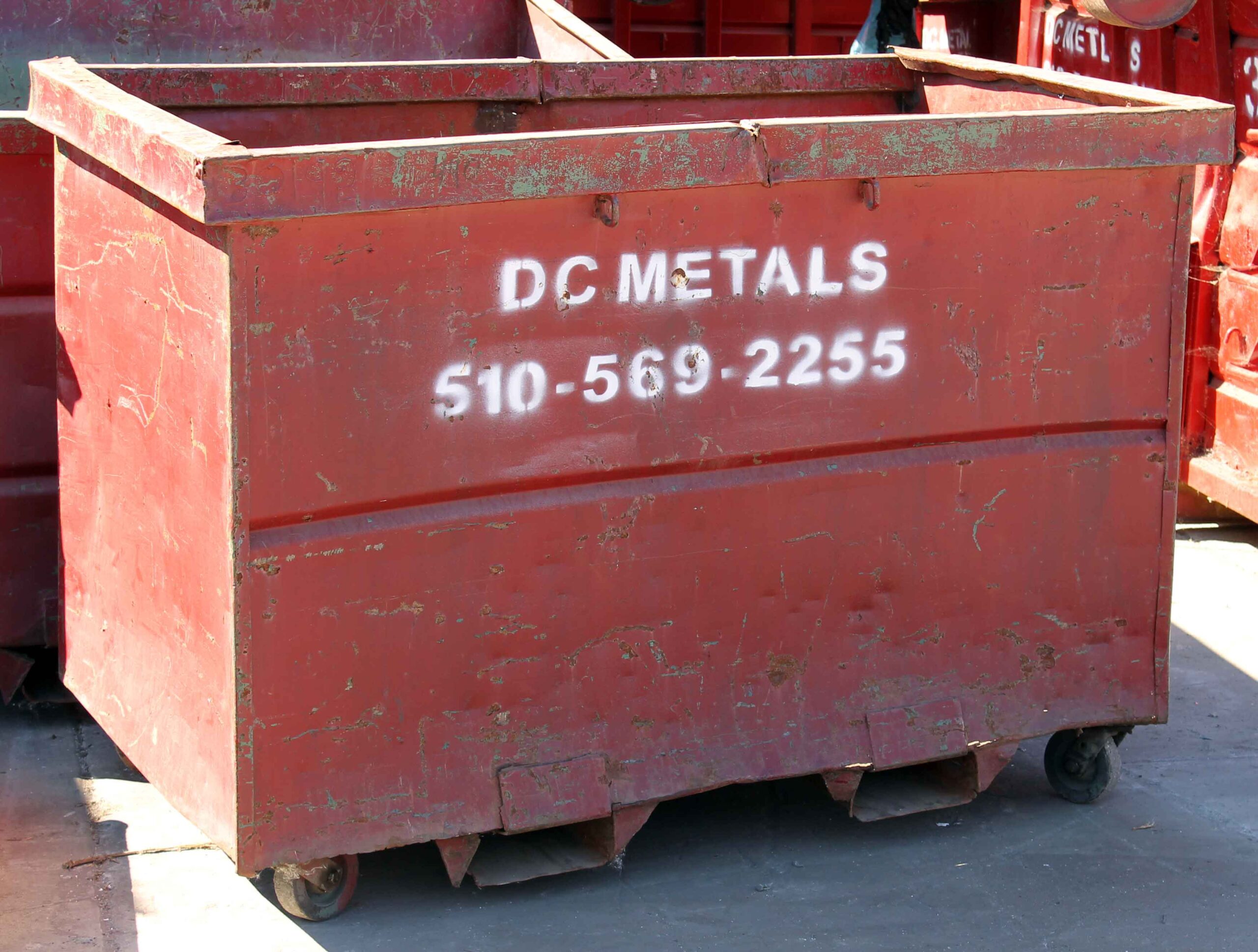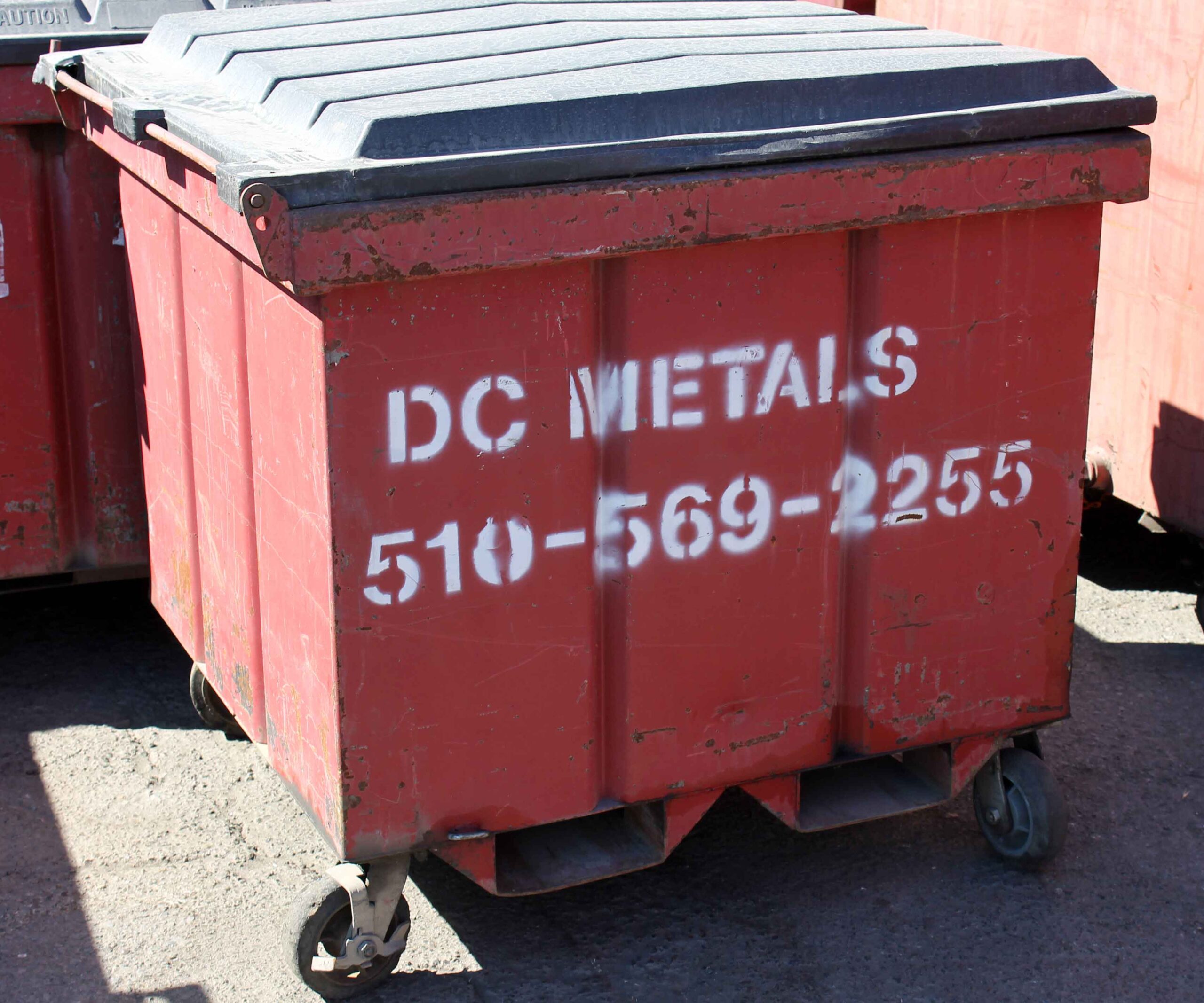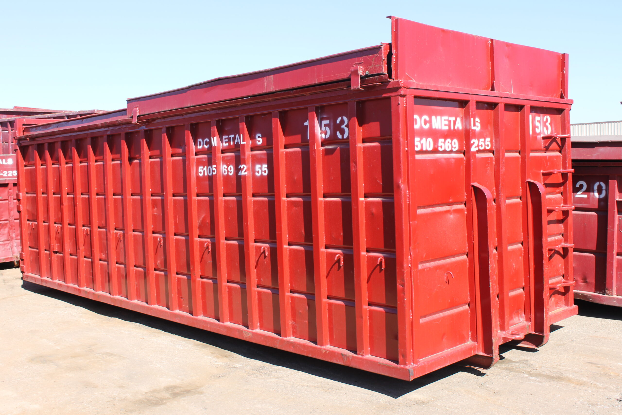 - painted red with DC Metals company logo and box ID number in white lettering