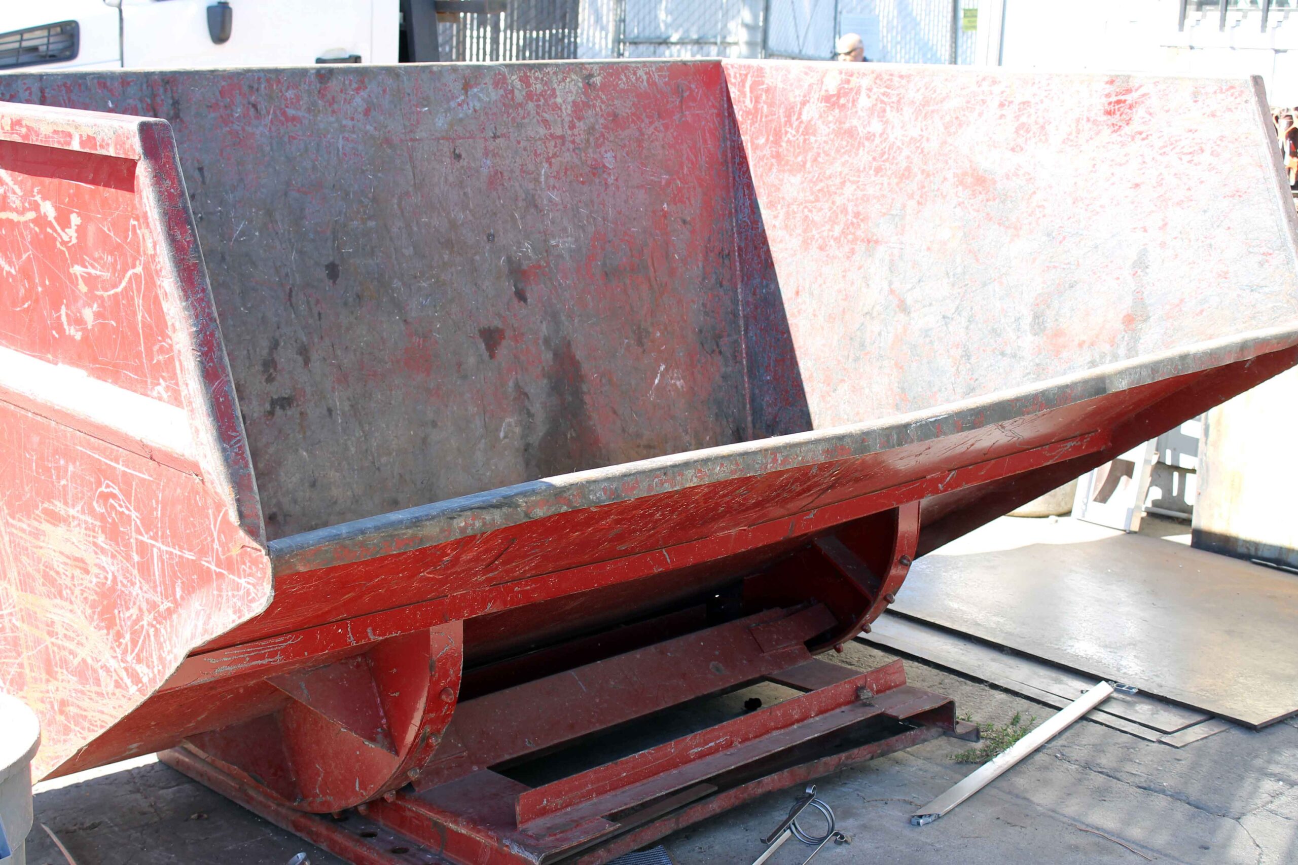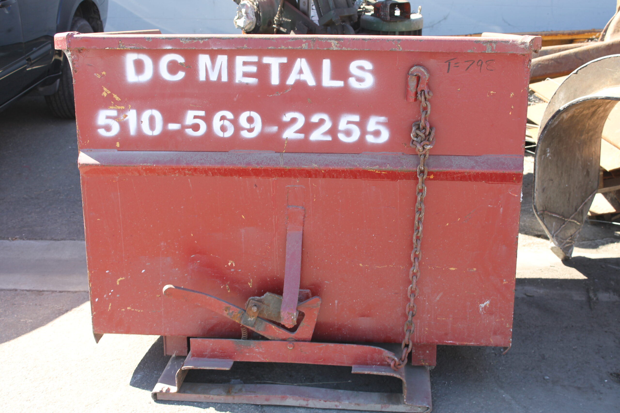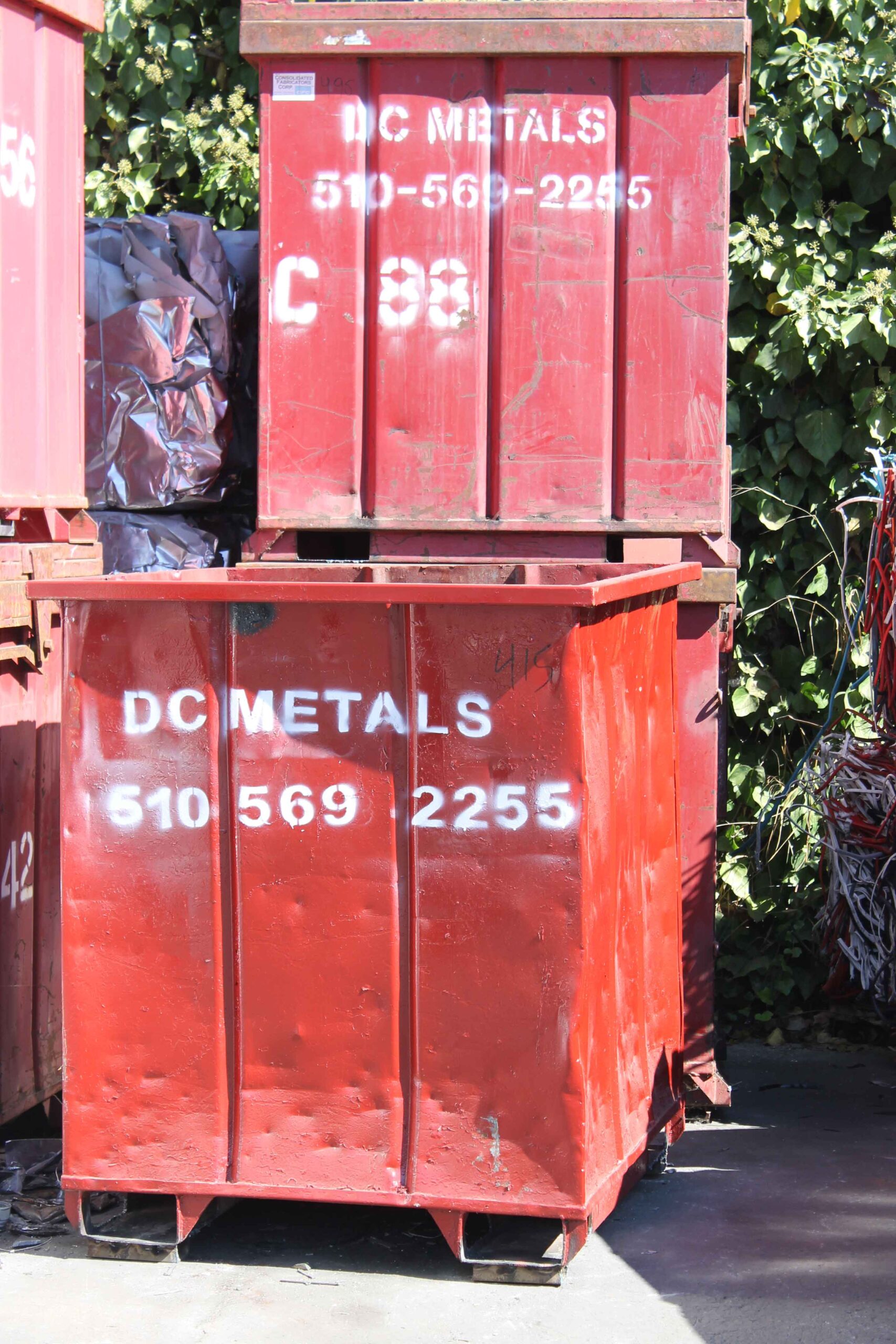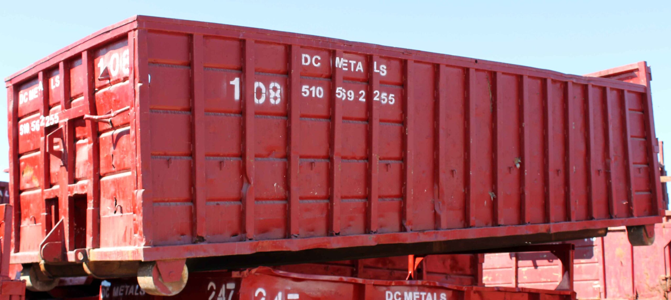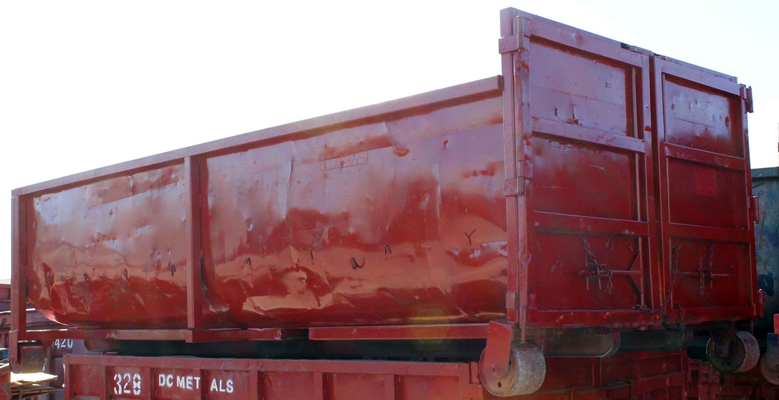 - painted red with DC Metals company logo and box ID number in white lettering